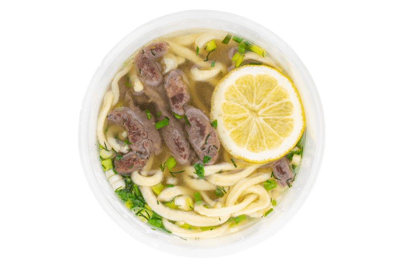 Бульон куриный, говядина, лук репчатый, зелень( лук зелёный, укроп, петрушка), лимон. Гарнир на выбор лапша(лапша/рис)